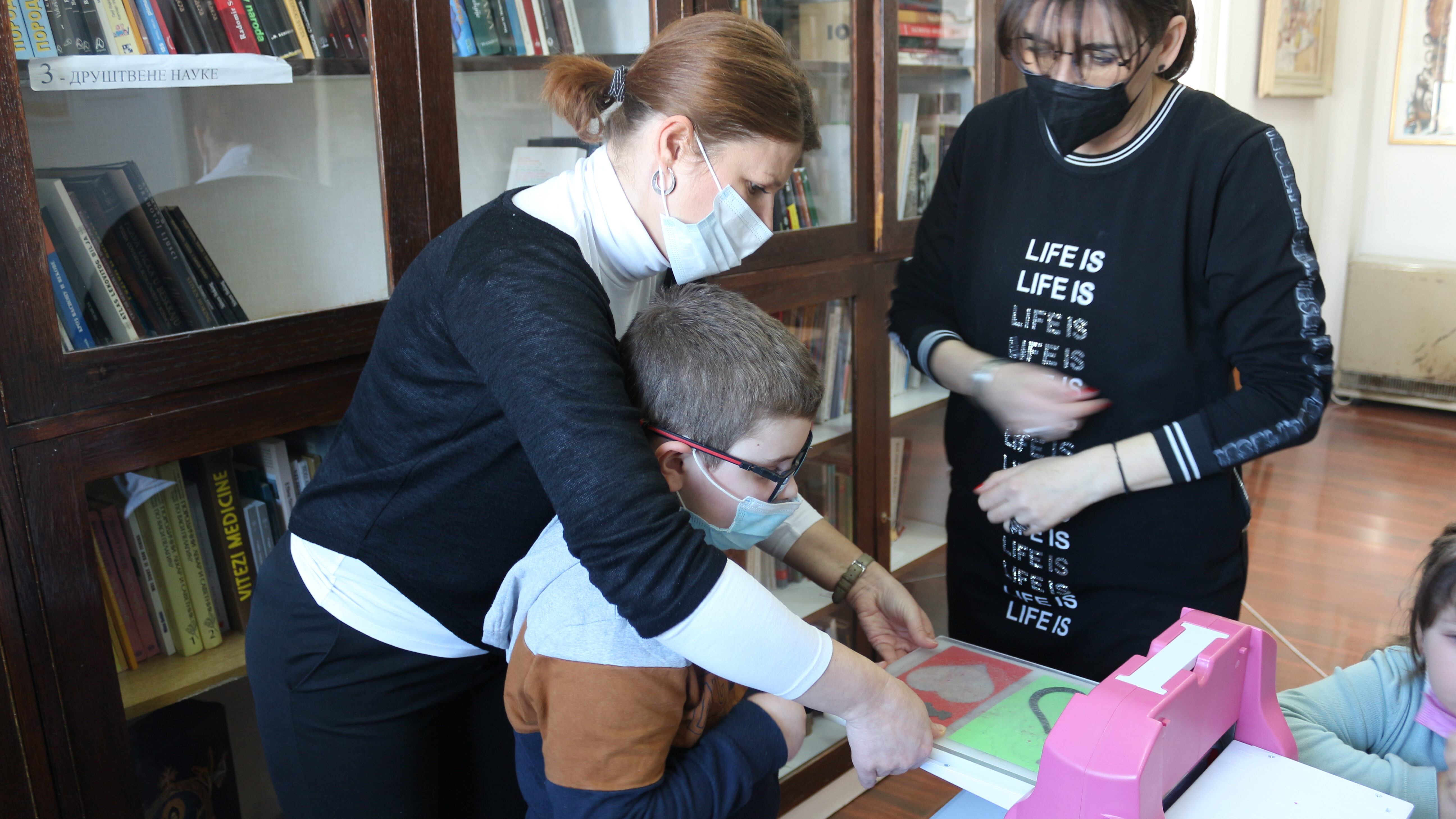 Поводом Дана заљубљених, у библиотеци Културног центра је одржана радионица „Љубав на папиру“. Ученике дневног боравка ОШ „Свети Сава“ упознали смо са књижним фондом и дечјим одељењем наше библиотеке. Разговарали смо о другарству и о првим симпатијама у школским клупама. Уз помоћ чаробне машине, бомбона и Оливере, водитељке радионице, настале су прелепе шарене честитке.