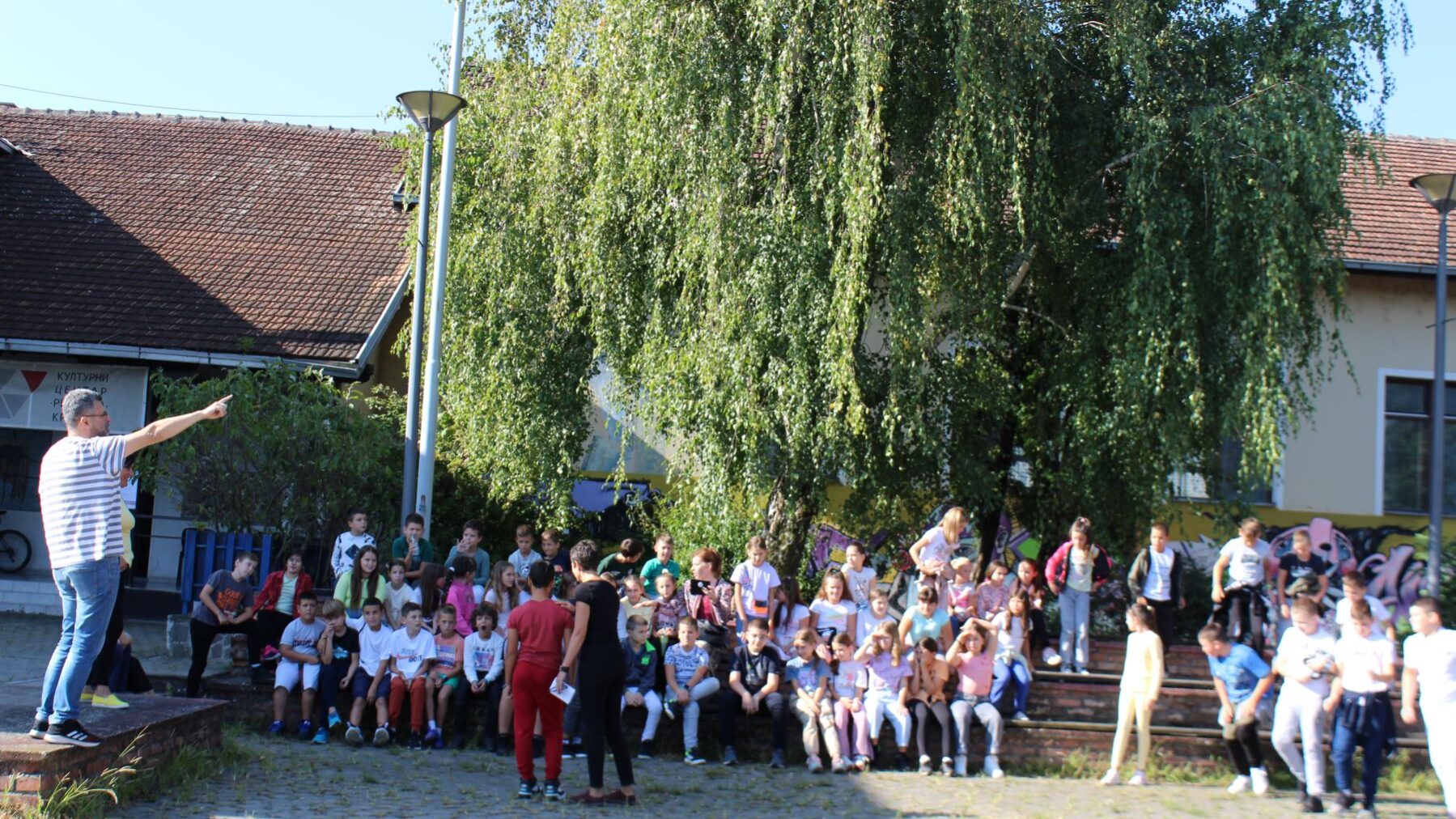 Након тога, у атријуму испред објекта у ком се налази Културни центар, Оливера Марјановић, испред Редакције за децу и младе, у форми игре, деци је показала како је све много лакше када користимо речи. Прво је показала како је све то изгледало пре појаве речи, користећи невербалну комуникацију, а касније су деца погађала појмове играјући се пантомиме.